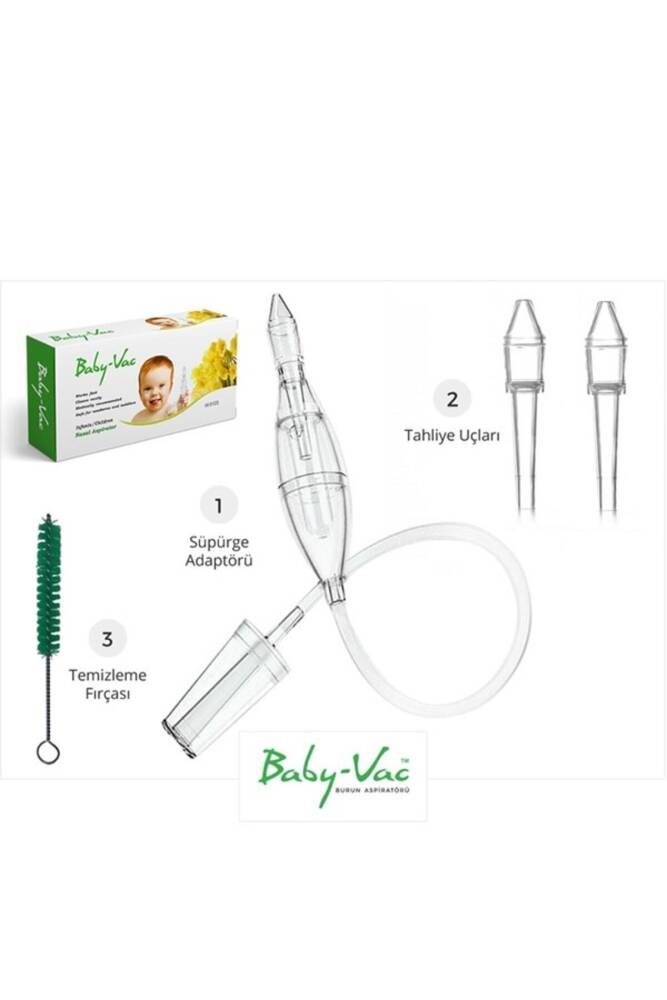 Baby-Vac Burun Aspiratörü; Akıntı sebebiyle burun tıkanıklığı yeni doğanlarda, bebeklerde ve küçük çocuklarda en büyük sorunlardan birisidir.; Bebeklerin burun kanalları erişkin insanlara göre daha dardır.;Özellikle yeni doğan bebekler sadece burunlarından solunum yapabildiklerinden, burun kanallarının açık olması çok önemlidir.Bebeği emzirme esnasında, meme ağzındayken burnundan nefes alması gerekir.; Burun kanallarının tıkanık olması bebekte beslenme, uyku sorunları ve huzursuzluk gibi sorunlara yol açmaktadır.Burnu tıkalı bebekler iyi beslenemezler.; Ayrıca rahat nefes alamadıkları için uyku esnasında sık uyanırlar ve derin uykuya geçemedikleri için dinlenemezler.;Buna bağlı olarak daha da huzursuzlaşırlar ve iştahları kesilir.;Çok ileri dereceli burun tıkanıklıklarında uyku sırasında apne, yani solunum kesilmeleri bile gerçekleşebilir.Ayrıca burun, vücut için bir çeşit klima sistemi görevi görerek alınan havayı ısıtır, filtre eder ve nemlendirerek ciğerlere gönderir.;Ağızdan nefes alındığında ciğerlere soğuk, kirli ve kuru hava gider.;Bu sebeple burnu tıkalı bebekler ve çocuklarda boğaz ve alt solunum yolu enfeksiyonları daha sık görülür.;Alt solunum yolu rahatsızlıkları da orta kulak iltihabına yol açabilmektedir.Bütün bu sebeplerden dolayı yeni doğanların, bebeklerin ve küçük çocukların burun kanallarının açık olması ve rahat nefes almaları çok önemlidir.Yeni doğanlar ve bebekler, sonradan öğrenilen ve solunum kaslarının koordinasyonunu gerektiren sümkürme hareketini yapamazlar.;Sümküremediklerinden burunlarında biriken akıntıyı dışarı atamazlar.;Sümkürme hareketinin öğrenilmesi 3 yaş civarlarında gerçekleşir.Küçük çocuklarda da burun akıntılarını temizlemek için kullanılan mendil gibi tahriş edici malzemeler çeşitli rahatsızlıklara sebep olmaktadır.Baby-Vac Nedir?Bebeklerin ve küçük çocukların burunlarını tahriş etmeden ve canlarını acıtmadan temizlemek için en iyi yol Baby-Vac Burun Aspiratörü'dür.Baby-Vac Burun Aspiratörü, bebeklerin ve küçük çocukların burun akıntılarını temizlemek üzere dizayn edilmiş, elektrikli süpürge yardımıyla çalışan, kolay kullanımlı ve pratik bir araçtır.Bir ucu elektrik süpürgesine takılan aletin diğer ucu çocuğun burun deliğine yaklaştırılır.;Baby-Vac, süpürgenin sağladığı hafif vakum gücüyle burun içindeki akıntıları kolaylıkla çekerek burun kanallarının temizlenmesini sağlar.Baby-Vac, özel bağlantı noktasıyla, elektrikli süpürgenin gücünü filtreler ve burun içindeki akıntıları çekebilecek düzeye düşürür.;Çocuğa hiçbir şekilde zarar vermez.;Burun içindeki akıntıları birkaç saniye içinde temizleyerek bebeğinizin sağlıklı ve mutlu olmasını sağlar.Baby-Vac kullanımı oldukça kolay ve pratik bir üründür.;İşlem sırasında bebeğe acı veya rahatsızlık vermez, herhangi bir yan etkisi veya zararı yoktur.;0-6 yaş grubu için idealdir.Her ihtimale karşı, çocuğunuzun üşütmesi birkaç günden fazla sürer ise sadece burnunu temizlemekle kalmayın, mutlaka doktora