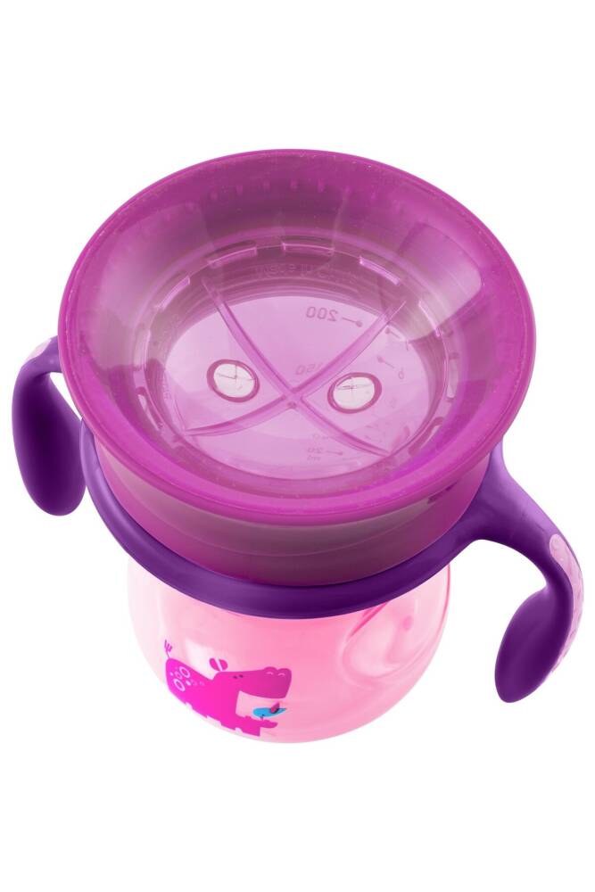 Chicco 360 Dönen Bardak 12 Ay+ Kız 360° bardak, özel dudakla aktif ucuyla bağımsız içmeyi teşvik eder;; Dudakla aktif olan valf, bebeğin dudaklarına bastırıldığında sıvıları serbest bırakır; %100 dökülmeden kalır;; Bebeğin kendisine doğru gelen sıvıyı görebilmesi için net silikon zar;; Serbest akışlı açık bardak eğitimi için çıkarılabilir valf.; 200 Ml / 7oz;